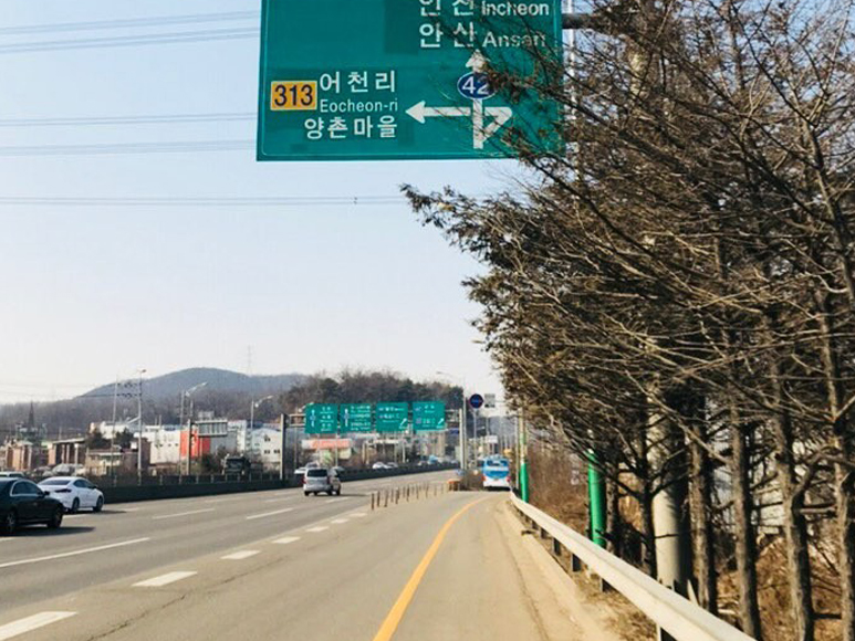 위로 올라오시다보면 큰도로 입니다. 수인로에서 합류 하지 마시고 그대로 직진 하시면 됩니다.